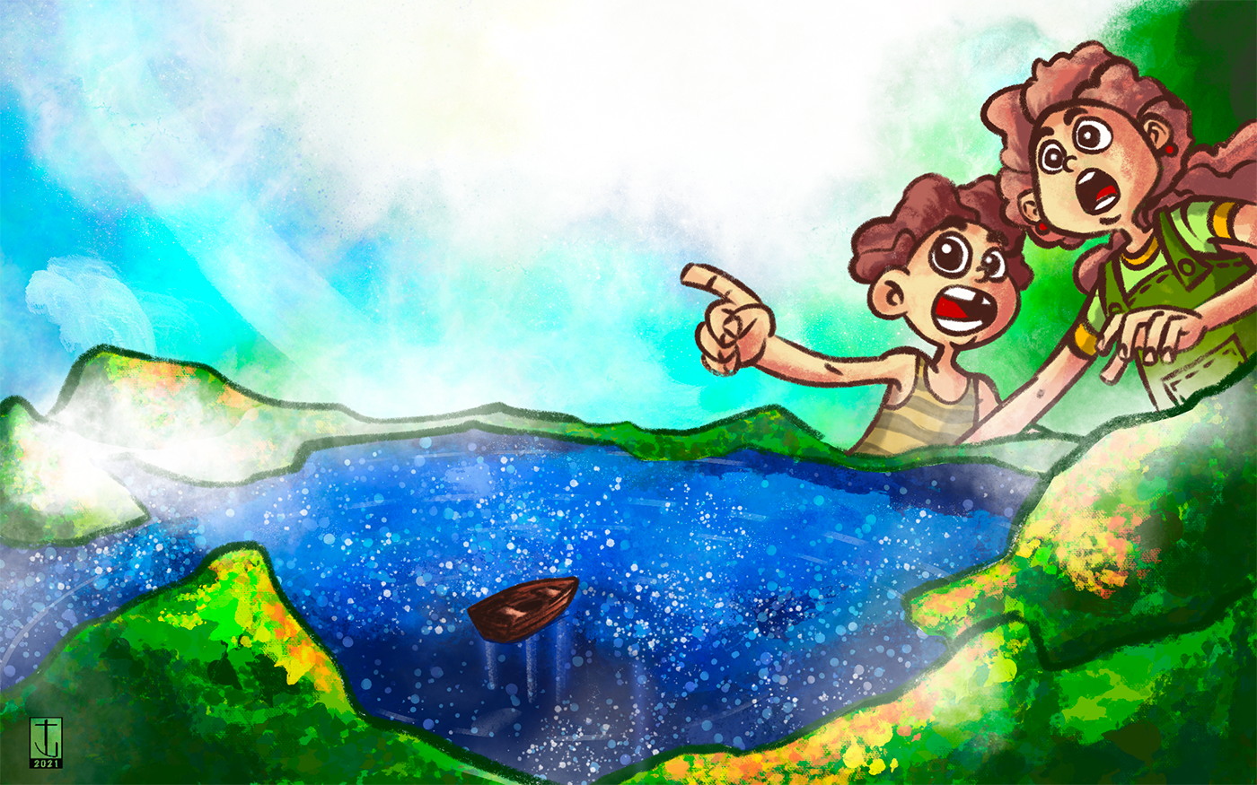 The briefing asked for a cover illustration of the book "The Secret Lake", by author Karen Inglis, based on a biref synopsis of the story and a description of the main characters.